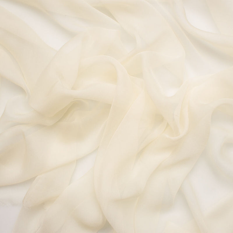 A lightweight balanced plain woven sheer fabric. Pure silk chiffon is ideal for giving any dress a floating and elegant appearance. Over 50 colours available.