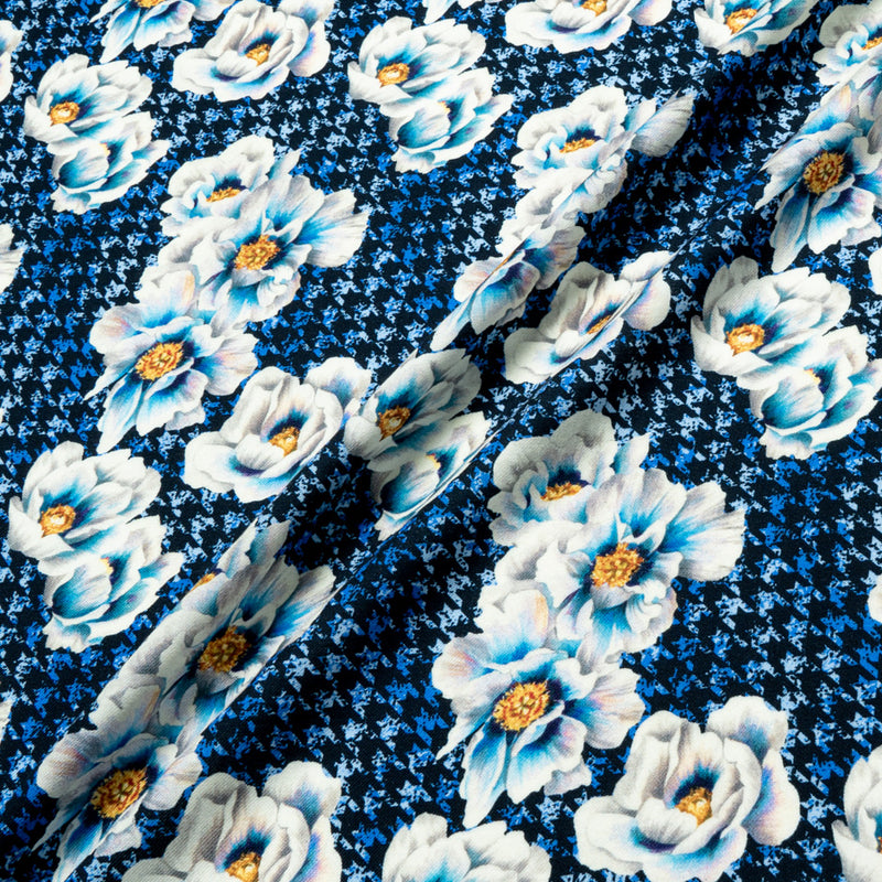 Floral Printed Blue Dogtooth Pure Merino Wool