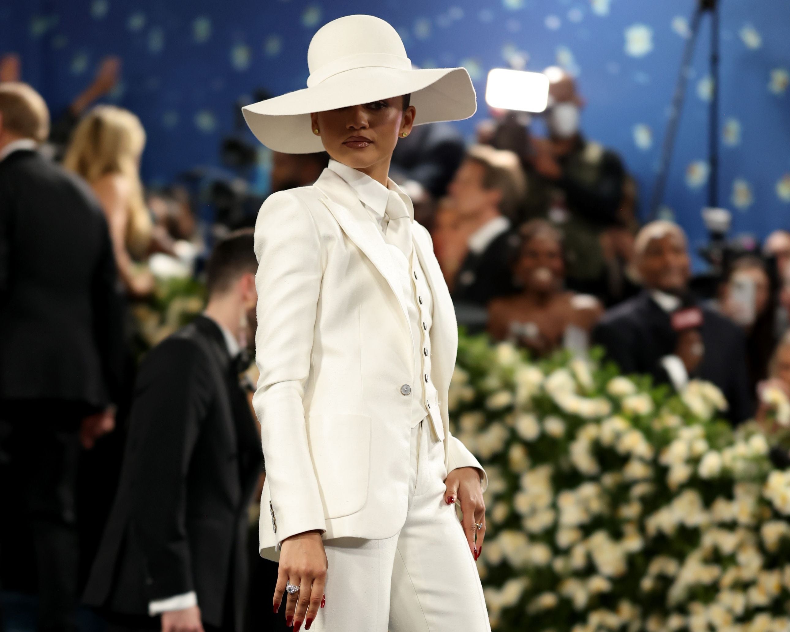 Zendaya in a stunning white stretch cotton ensemble by Louis Vuitton