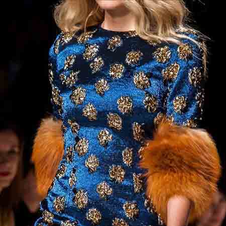 Blumarine has chosen for this season’s Brocade to be embellished with fur trimming. The shimmer of the silk in the fabric is simply divine and to achieve this rigid, malleable effect only Brocade can be used.