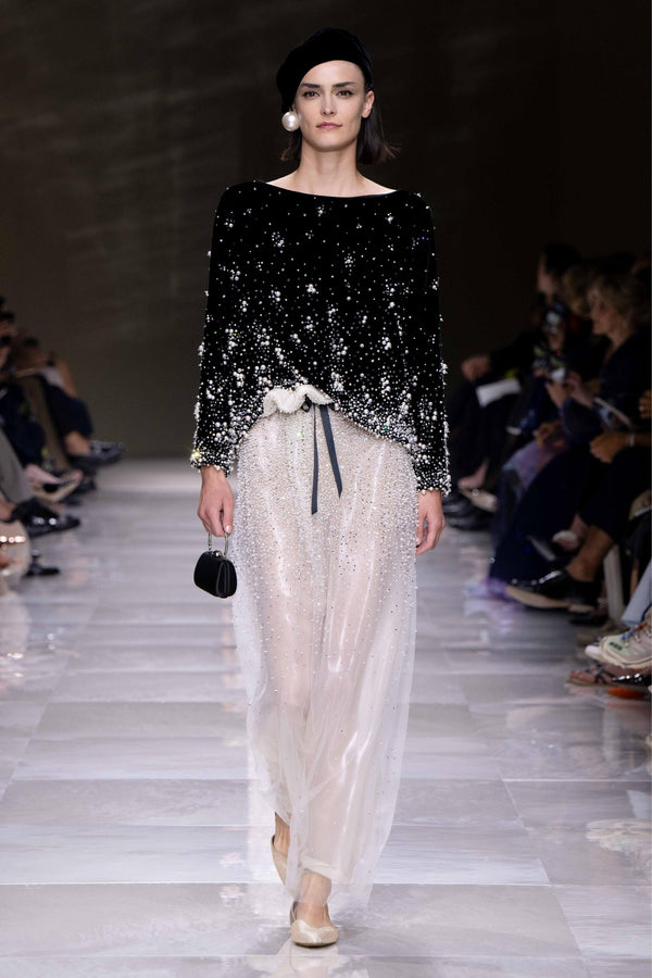 Armani's designs showed how to use pearls to accentuate and elevate fashion. Whether it was embroidered necklines, shoulder lines, or serving as delicate buttons, the pearls added a sense of luxury to each piece. The attention to detail was impeccable.