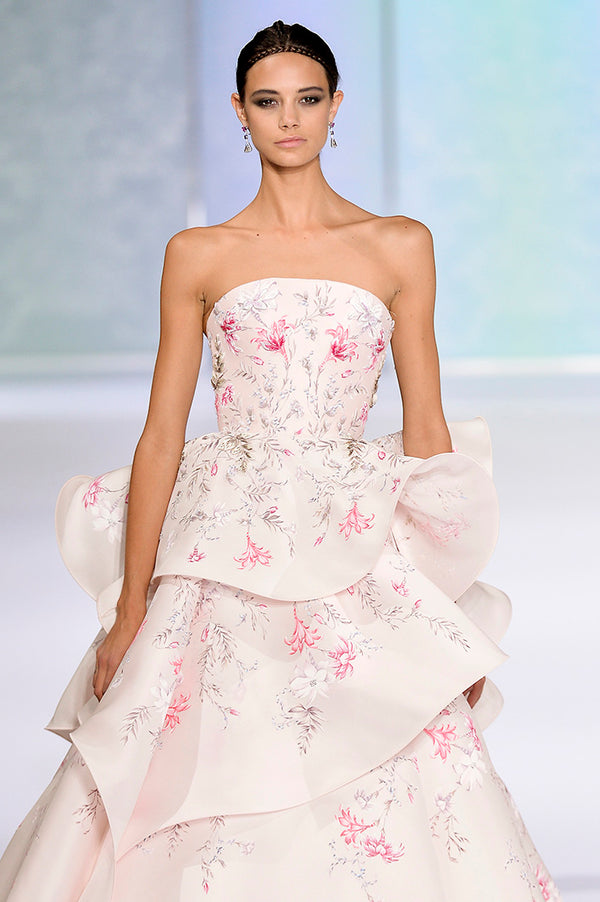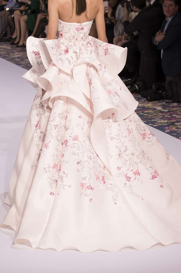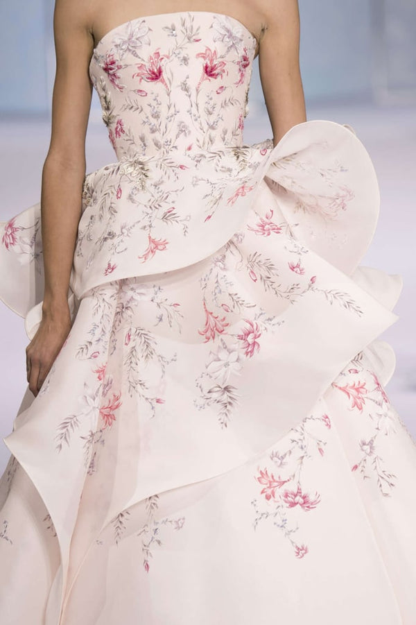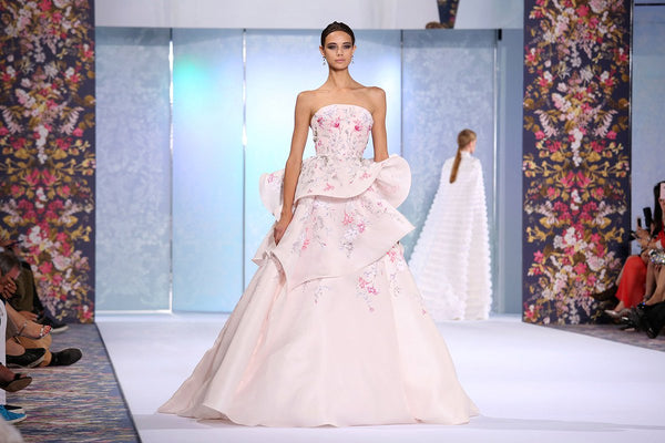 This soft blush Gazar, is the epitome of haute couture!