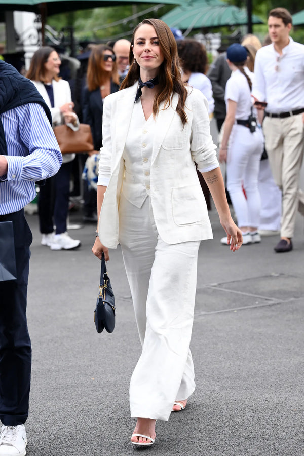 Wimbledon has a long-standing association with the colour white, rooted in its historical dress code. This year, the celebrity crowd has honoured this tradition with a modern twist. Crisp whites and soft creams are the dominant colours, exuding a sense of freshness and elegance. The perfectly tailored blazers and trousers, offer a polished look that is both timeless and chic.