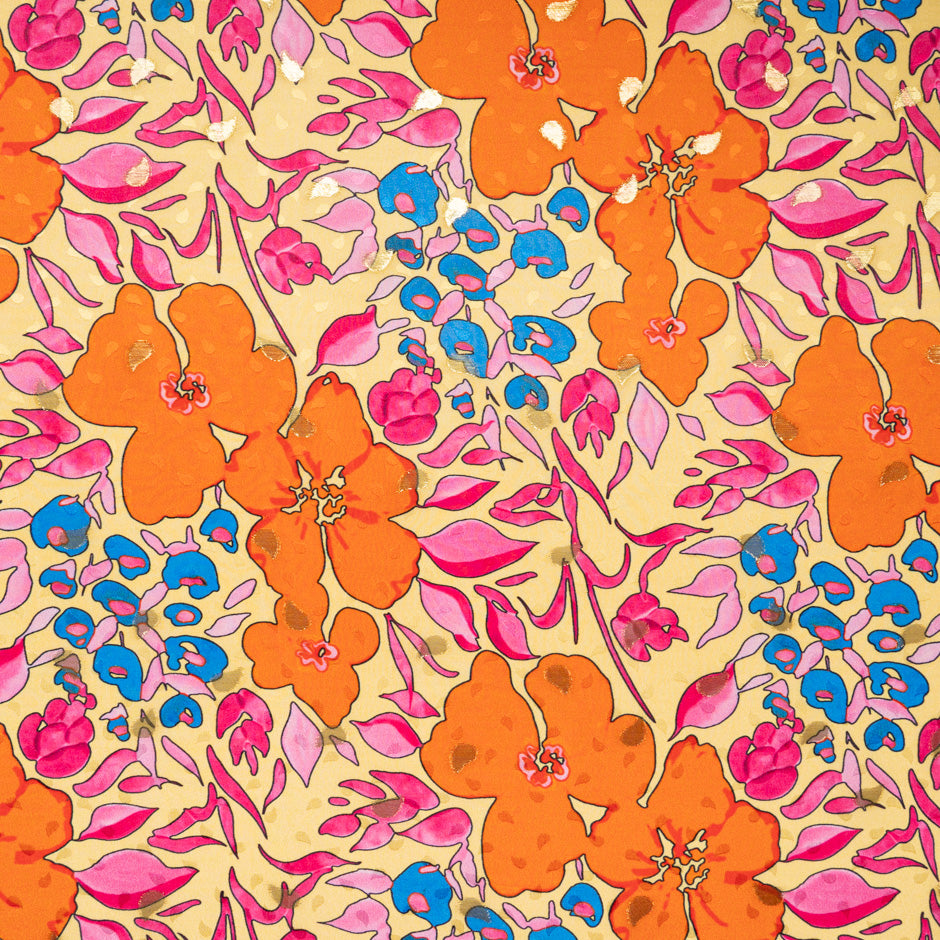 Printed cottons, silk jacquards, crêpes, cotton voile and organic corn fabrics, Chiara...