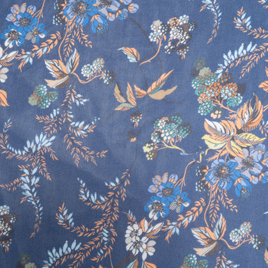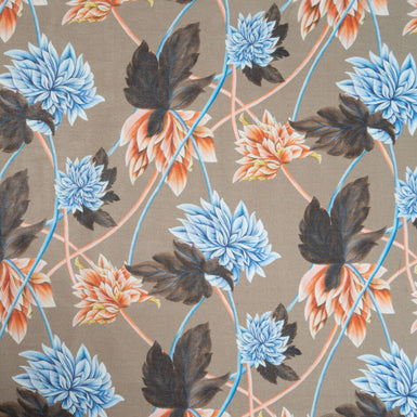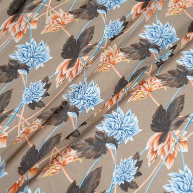 Brown Floral Printed Sky Blue Silk Georgette Fabric