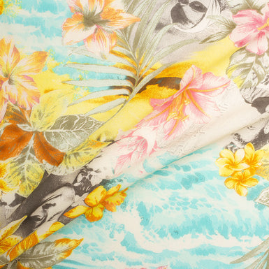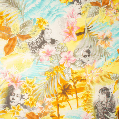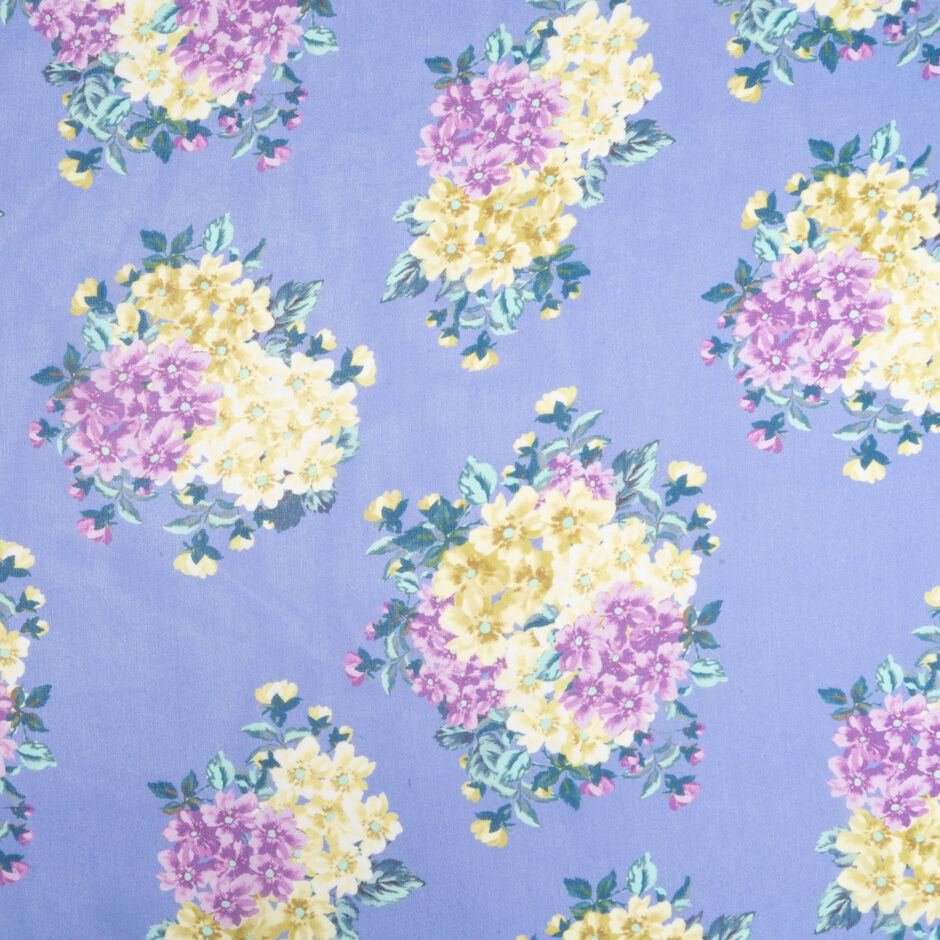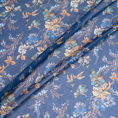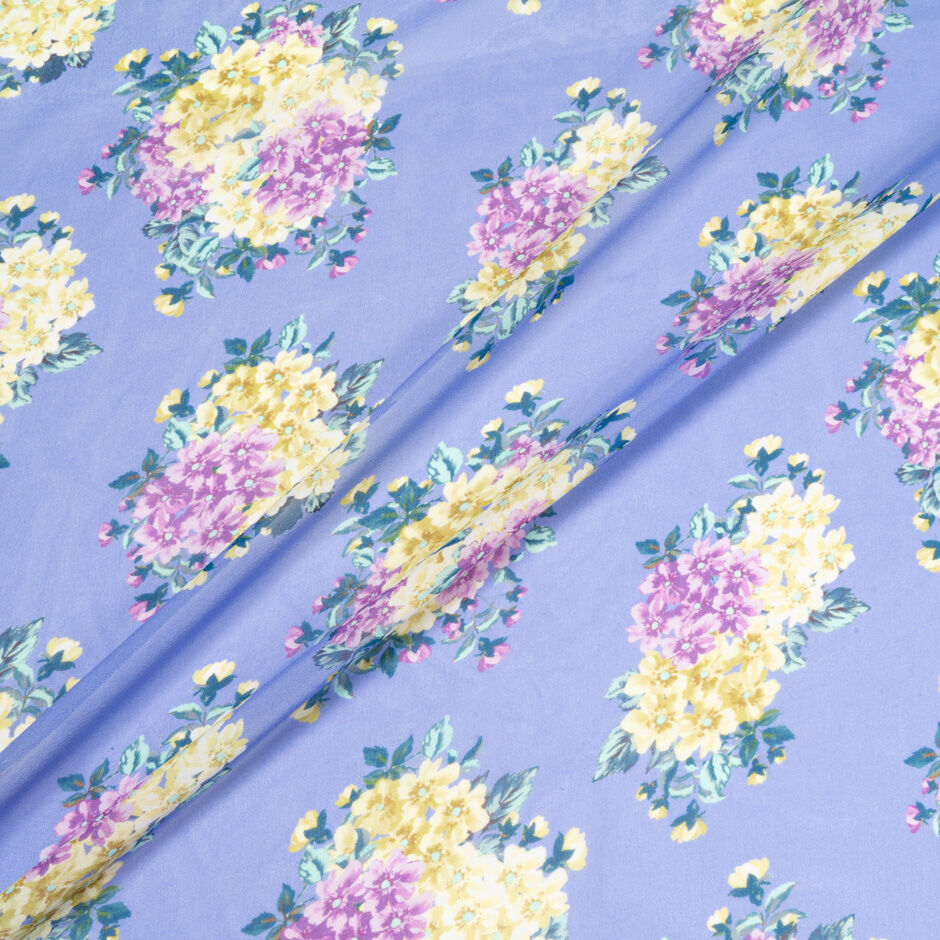 Yellow Floral Printed Pale Blue Silk Chiffon