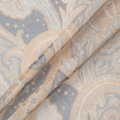 Orange Paisley Printed Green Silk Georgette By Abraham
