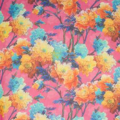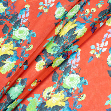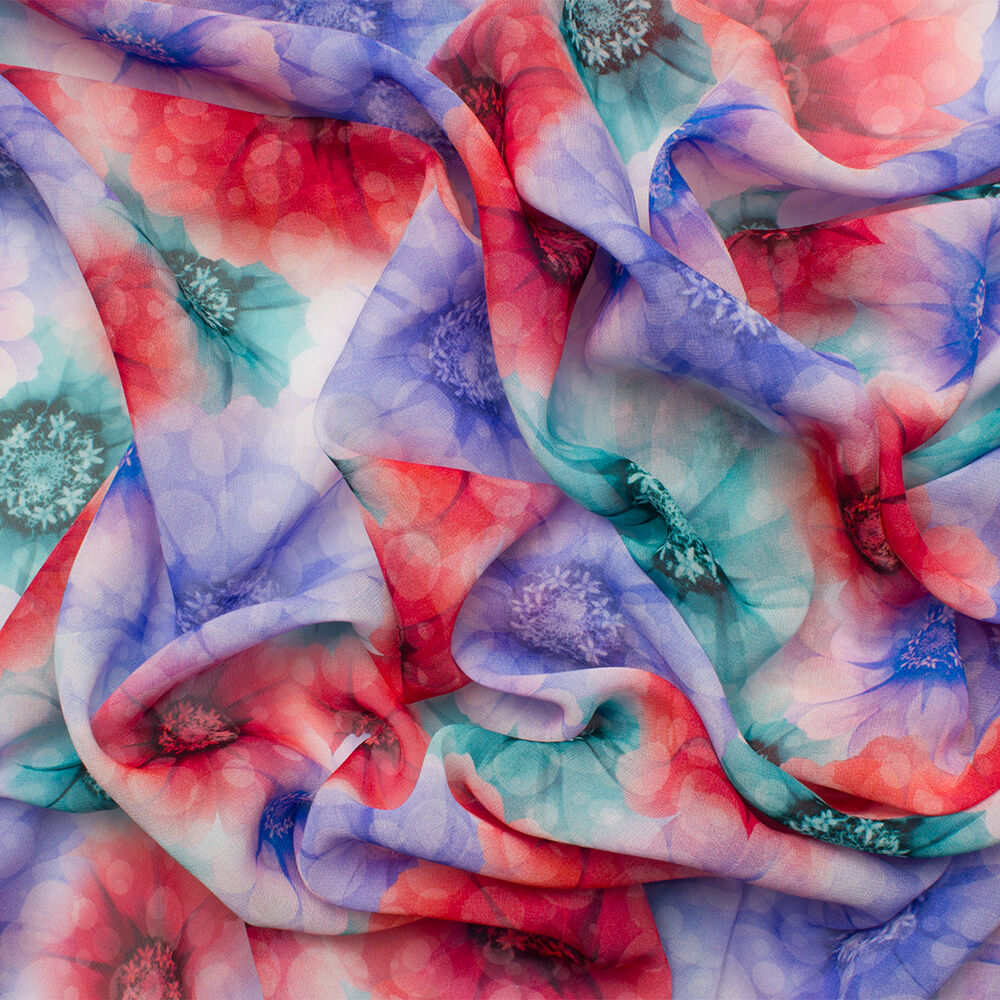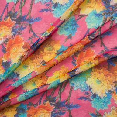 Red, Yellow & Pink Floral Printed Silk Georgette