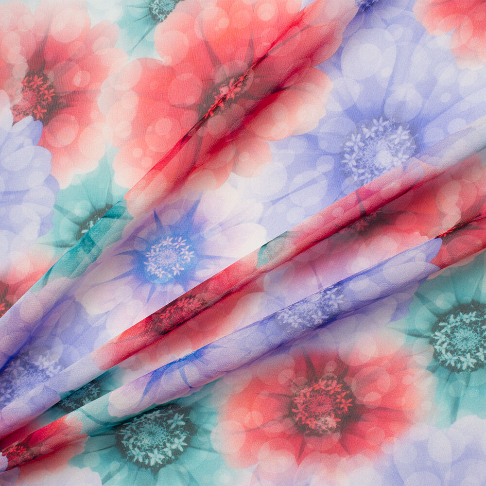 Red, Yellow & Pink Floral Printed Silk Georgette By Abraham