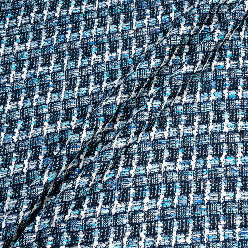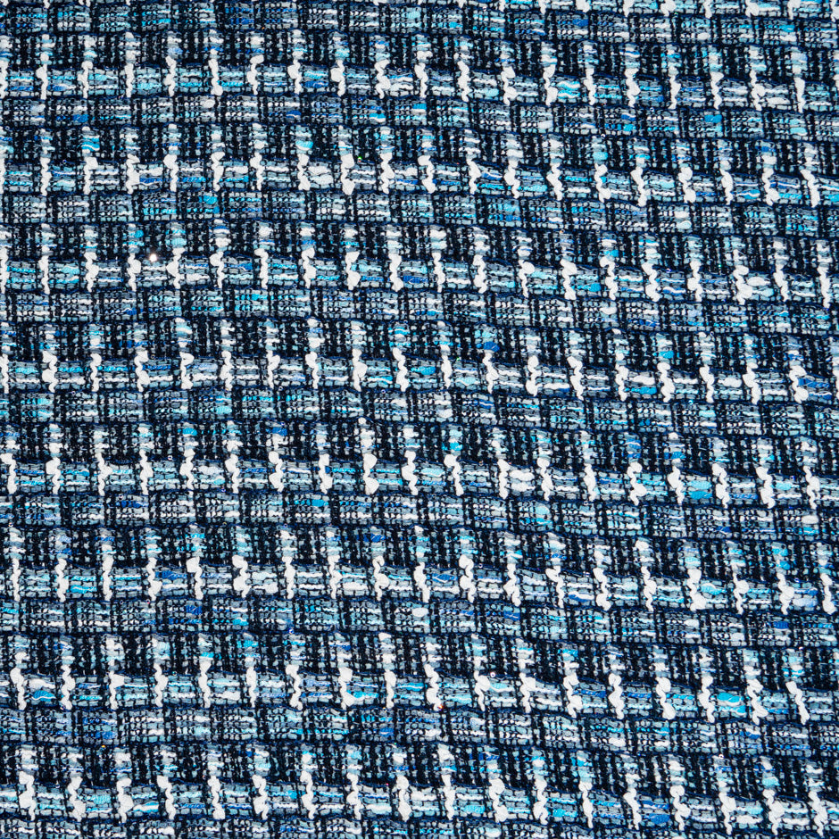 Blue & White Woven Cotton Blend Bouclé