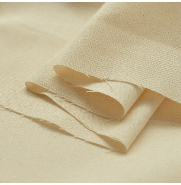 An unbleached, unfinished fabric made from cotton fibres. It is often described as a half-processed cotton cloth, because it's typically sold as a “loomstate fabric,” meaning it's sold as-is after its final stitch is woven.