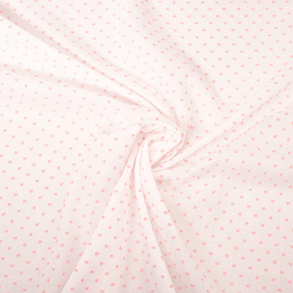 A lightweight, sheer cotton or cotton blend fabric with a small dot flock-like pattern either printed on the surface of the fabric, or woven into the fabric. End-uses for this fabric include blouses, dresses, baby clothes, and curtains.