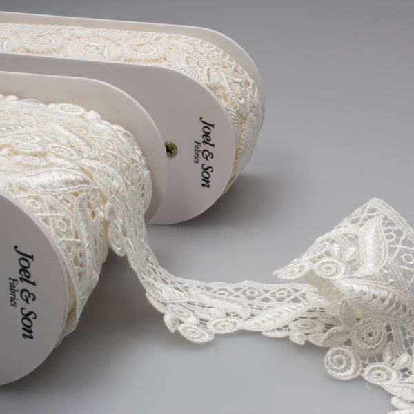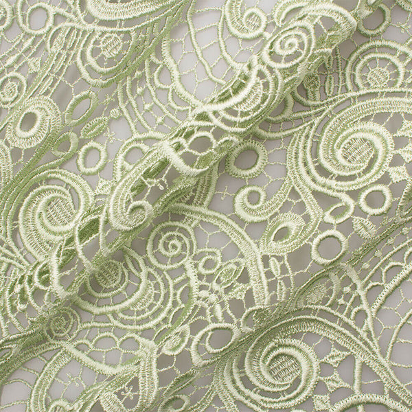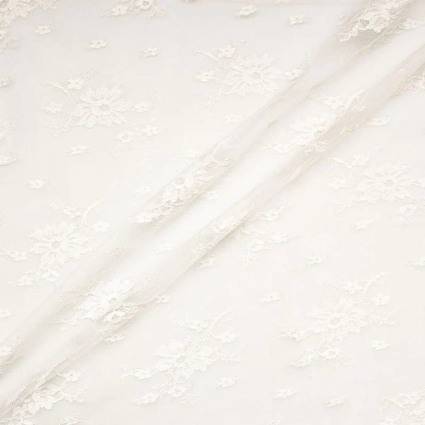 A type of bobbin lace traditionally created out of black threads and featuring floral or botanical patterns on a point d'esprit or net background. Its name originates from the city of Chantilly in France where such lace concept was firstly designed.