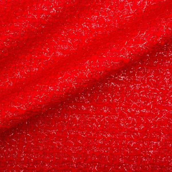 A knit or woven fabric made from a rough, curly, knotted boucle yarn. The fabric has a looped, knotted surface and is often used in suits and coats.
