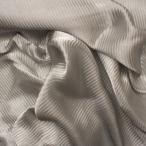 A corded fabric, usually made from silk or one of the manufactured fibers, which has a distinctive water-marked wavy pattern on the face of the fabric.
