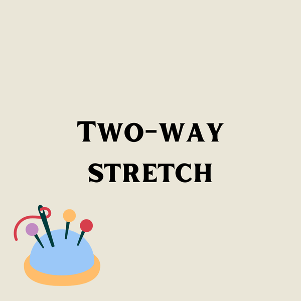 Two-way stretch fabrics stretch in one direction, usually from selvedge to selvedge. Four-way stretch fabrics, such as spandex, stretch in both directions, crosswide & lengthwise.