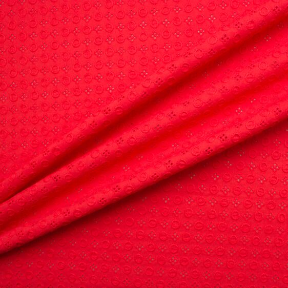 Literally - English embroidery. The name is given to a type of cotton fabric embroidered with a design to form a buttonhole stitch outline which is then cut away. Broderie Anglaise is embroidered with white cotton threads. If a coloured thread is used this is often called eyelet work