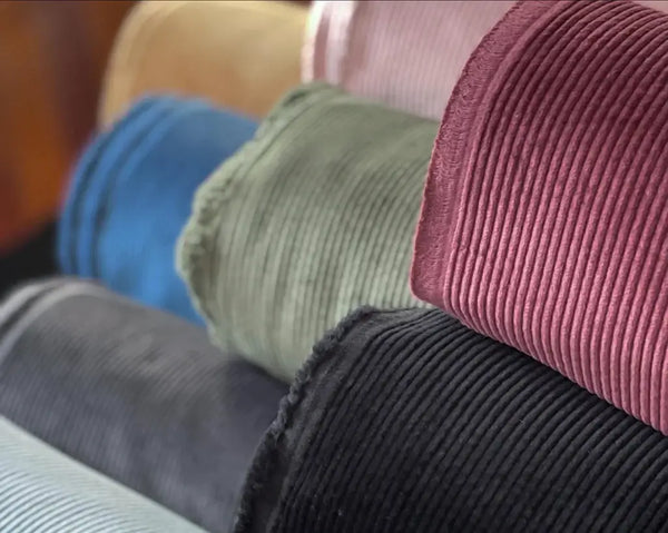 A fabric, usually made of cotton, utilizing a cut-pile weave construction. Extra sets of filling yarns are woven into the fabric to form ridges of yarn on the surface. The ridges are built so that clear lines can be seen when the pile is cut.