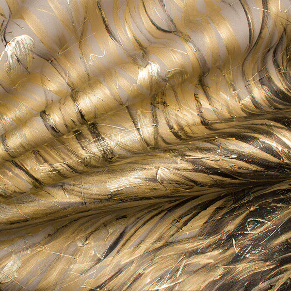 A silk or wool plain weave fabric made with high-twist double yarns woven as one. Gazar has a crisp hand and a smooth texture. Silk gazar is much used in bridal and evening fashion due to its ability to hold its shape.