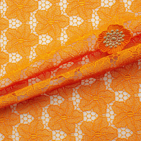 An open fabric, which is created by connecting the intersections in a woven, knitted, or crocheted construction to form a mesh-like appearance that won't ravel. End-uses include veils, skirts.