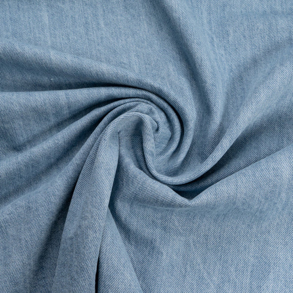 A coarse twilled cloth, usually of cotton or cotton and polyester which is practical and sturdy. Blue coloured is used as jeans fabric and cream or white is used as Drill.