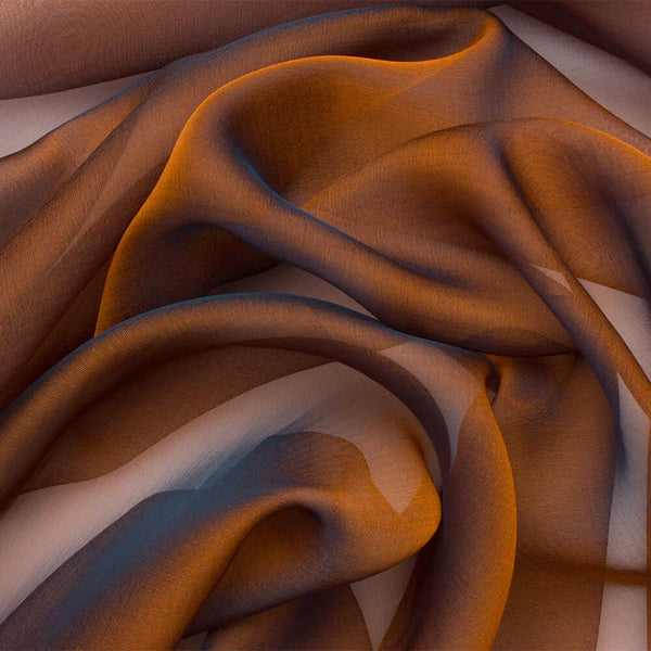A plain or printed woven lightweight, extremely sheer, airy, and soft silk fabric, containing highly twisted filament yarns. This fabric, used mainly in evening dresses and scarves, can also be made from rayon and other manufactured fibers