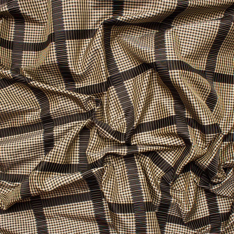 A traditional checkered design in a rich beige and black. This pure silk is ideal for dresses and skirts. Available in a variety of colours ways and designs. Take a look at our new full range of silk for more inspiration.