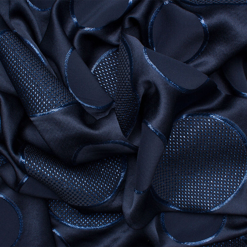 Midnight Blue Silk 'Circle' Jacquard Lamé