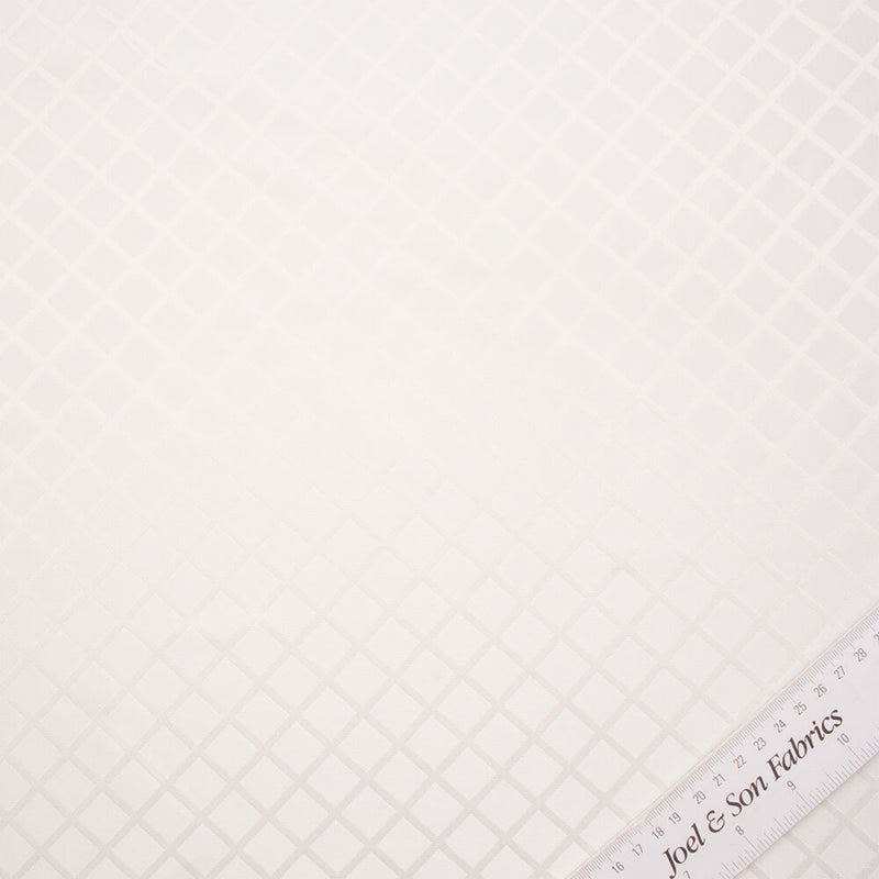 An off white brocade with bold lattice jacquard. This versatile fabric tailors especially well for a dress, jacket or two piece suit. Team this up with a plain silk crêpe to create an absolutely stunning outfit.