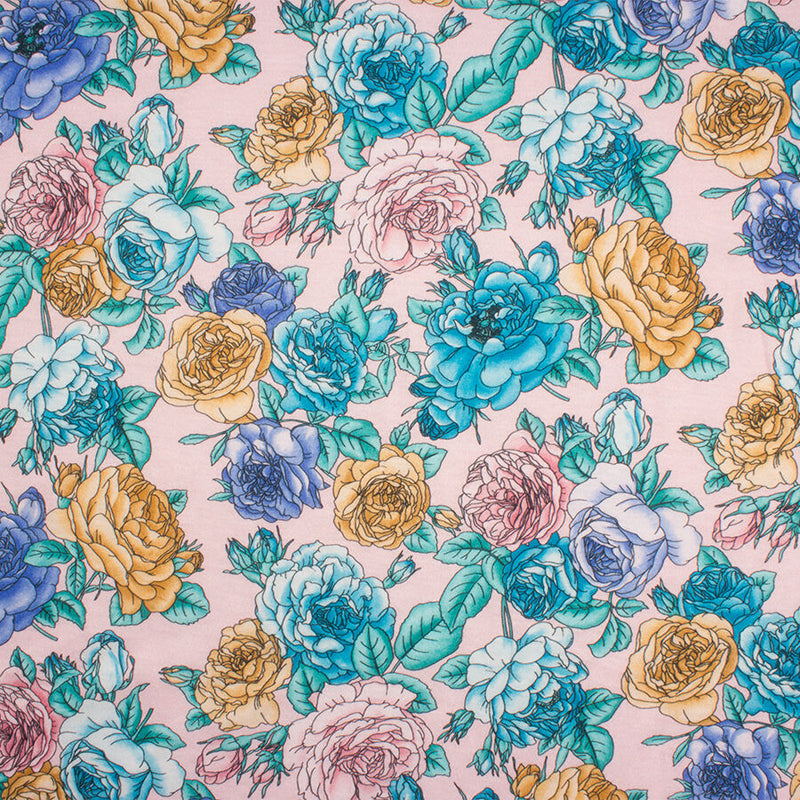 Pink/Blue Floral Printed Viscose Jersey