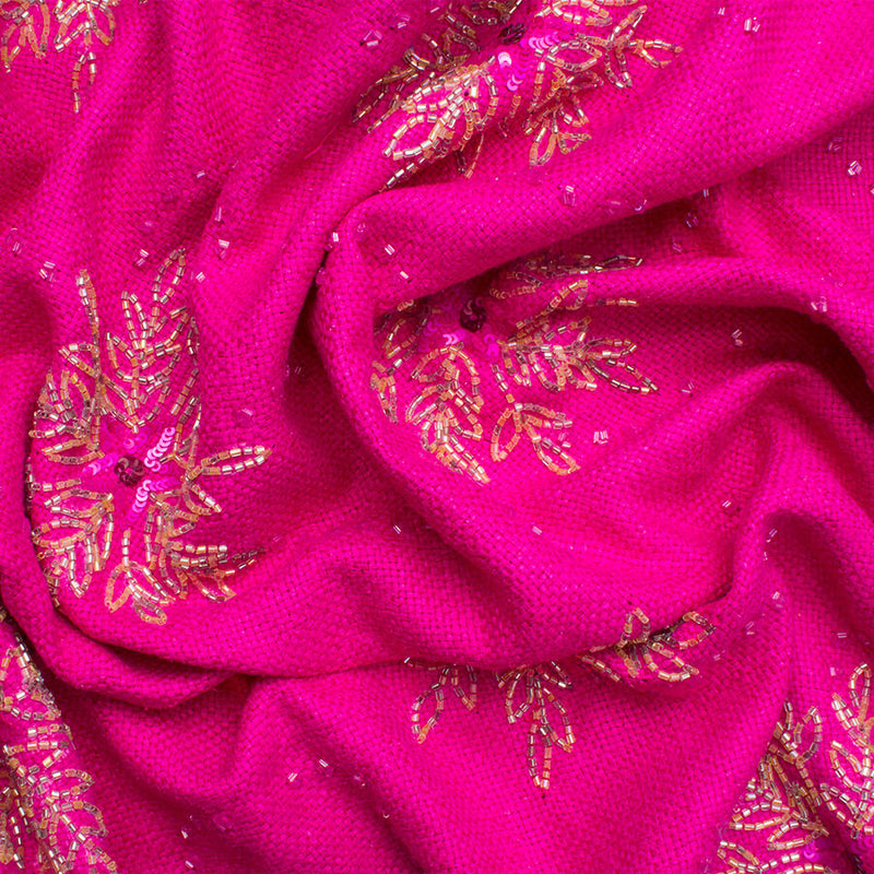 Fuchsia Pink/Gold Floral Embroidered Silk Matka