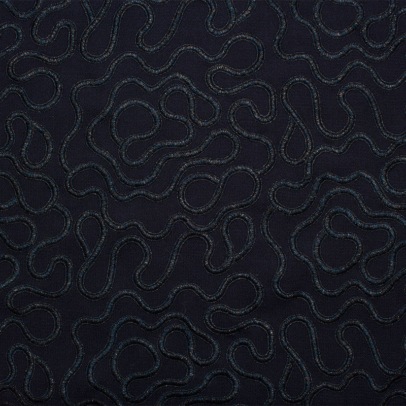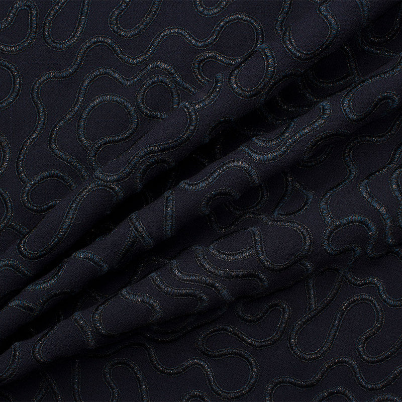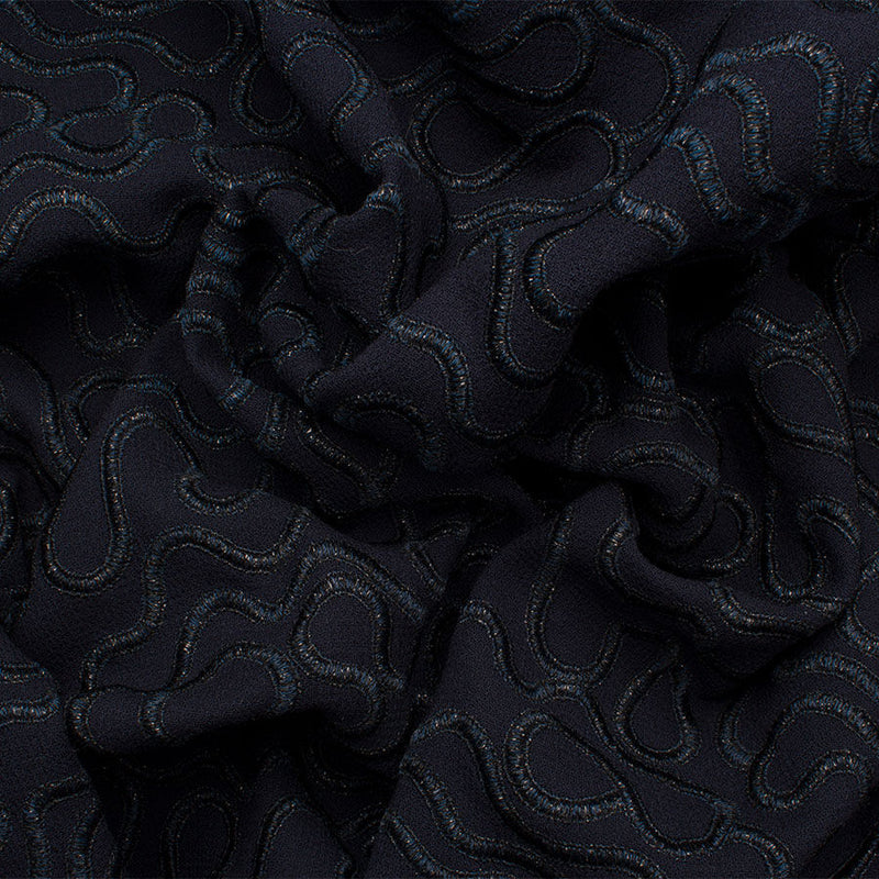 Midnight Blue Embroidered Double Wool Crêpe