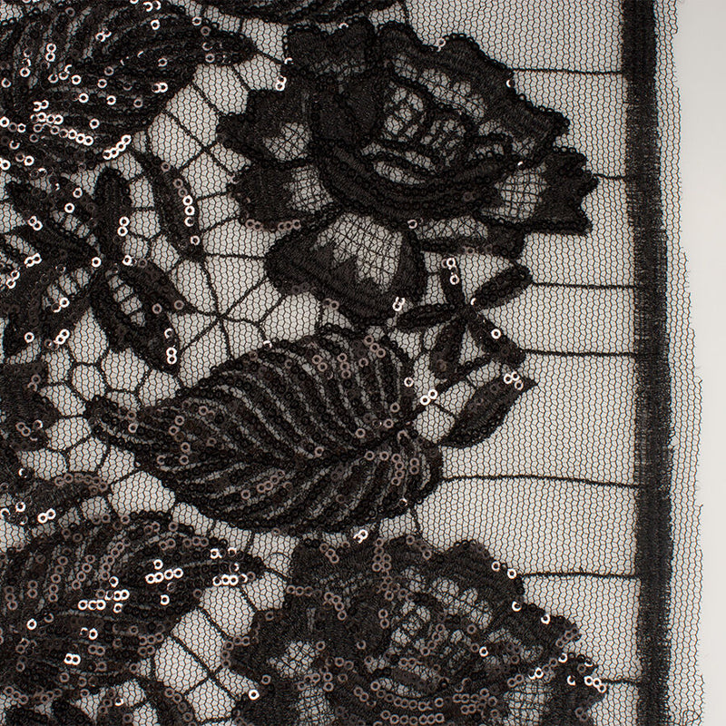 Black Floral Sequinned Lace