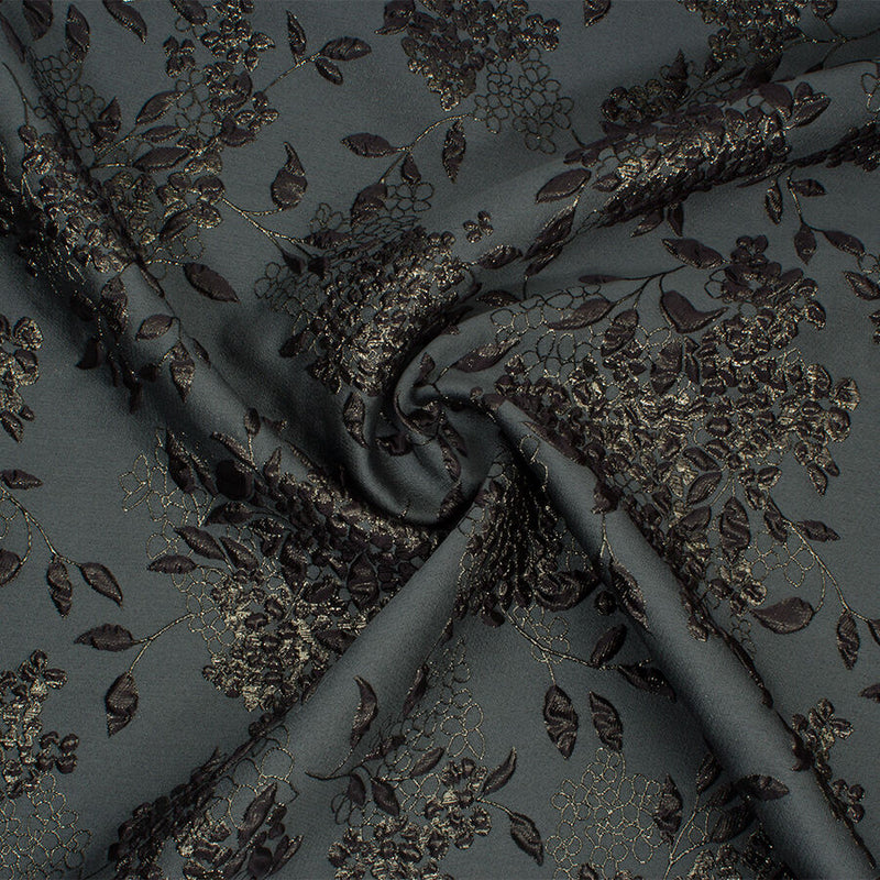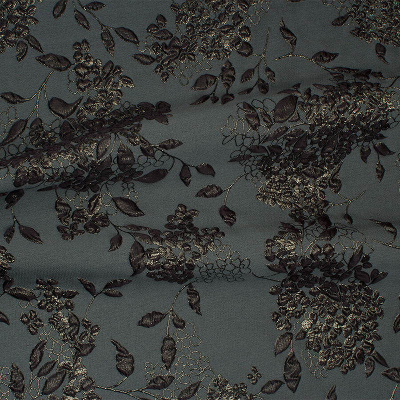 Muted Forest Green Metallic Floral Cloqué