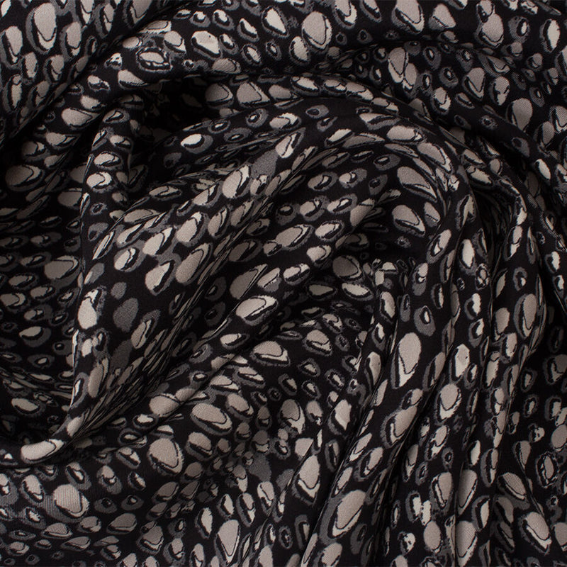 Black/Grey Abstract Animal Printed Silk Satin