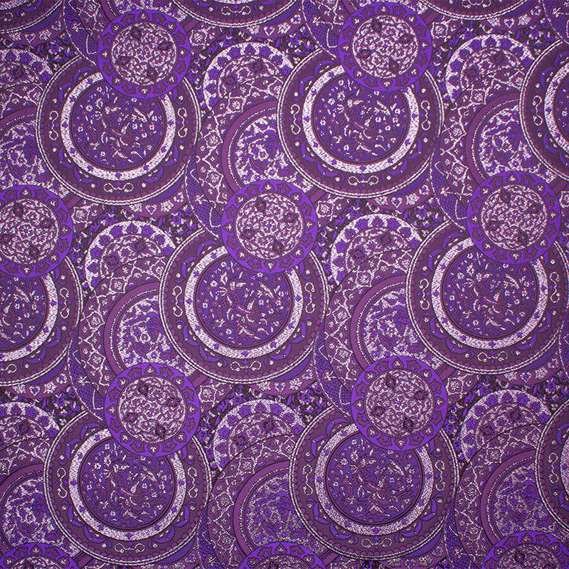 A purple metallic tone on tone brocade. Understated yet sophisticated, this pliable metallic brocade tailors especially well for a dress, jacket or two-piece ensemble. Team this up with a plain silk crêpe to create a gorgeous outfit.