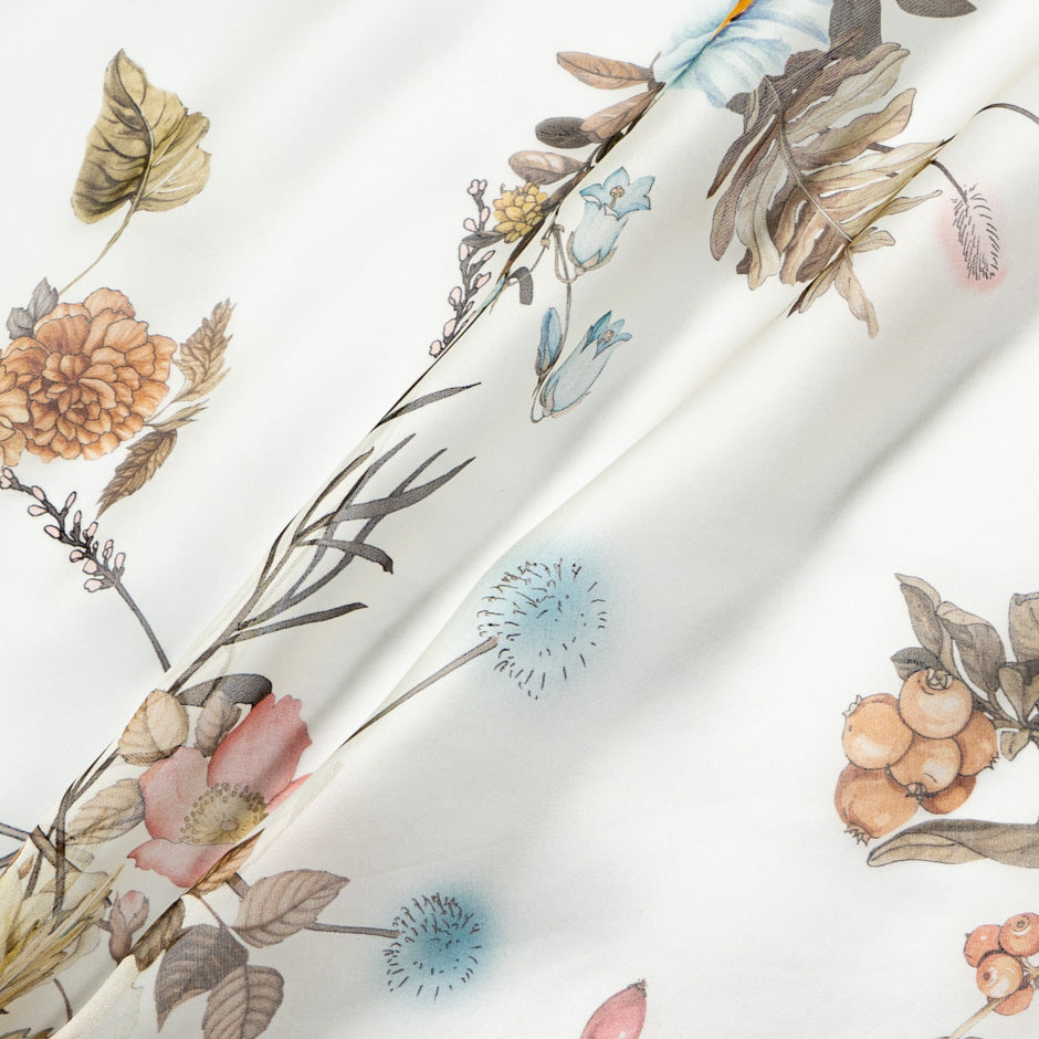 An Italian made acetate/silk jacquard mix in putty & lilac, depicting very subtle starfish shapes and pebbles on a beach. The handle is ideal for jackets, suits, skirts & dresses. Also available in other colours.