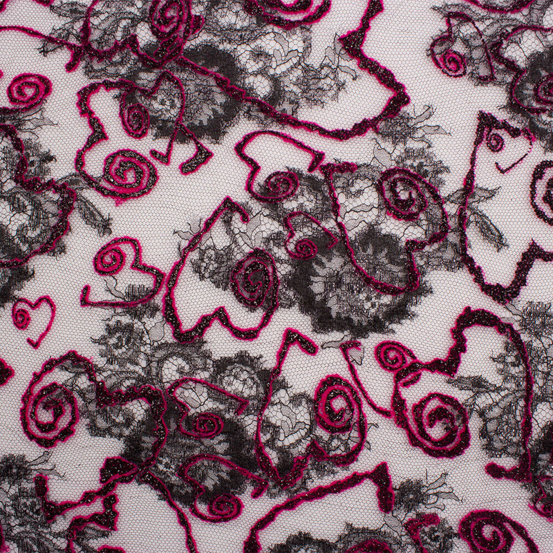 Pink/Black Metallic Flocked Heart Chantilly Lace
