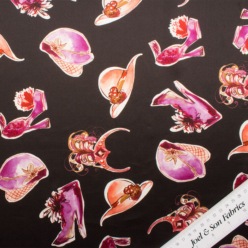 Hat & Shoes Black Printed Silk Satin