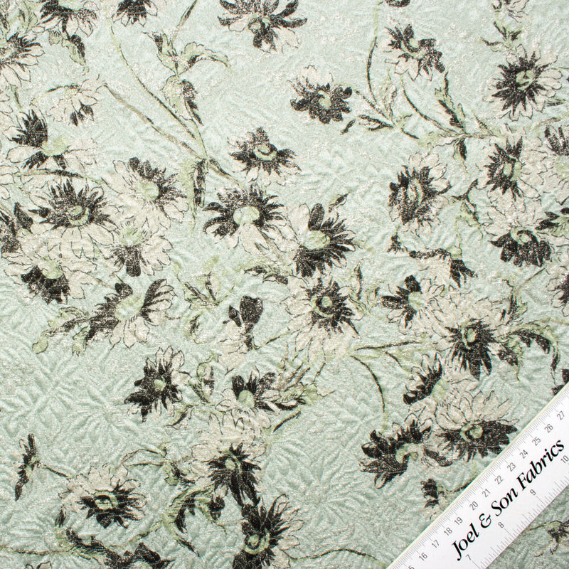 Pale Aqua Floral Metallic Cloqué