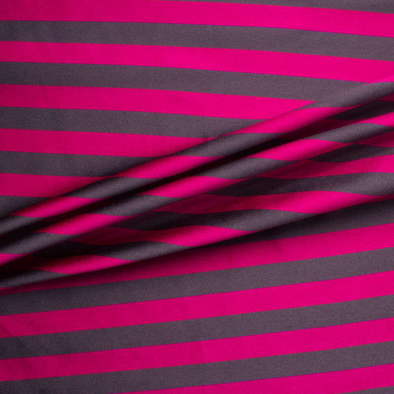 Magenta/Grey Striped Double Silk Satin