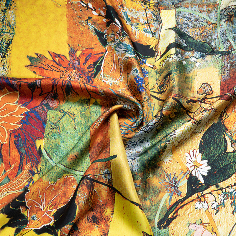 Abstract Patchwork Floral Printed Pure Silk Twill