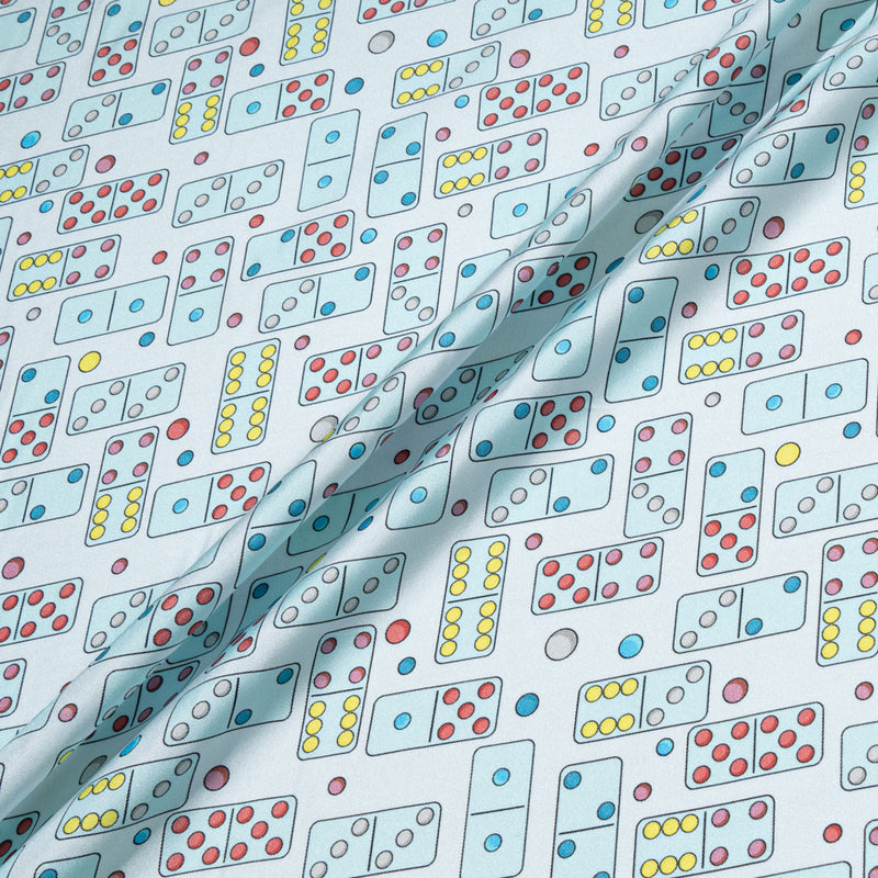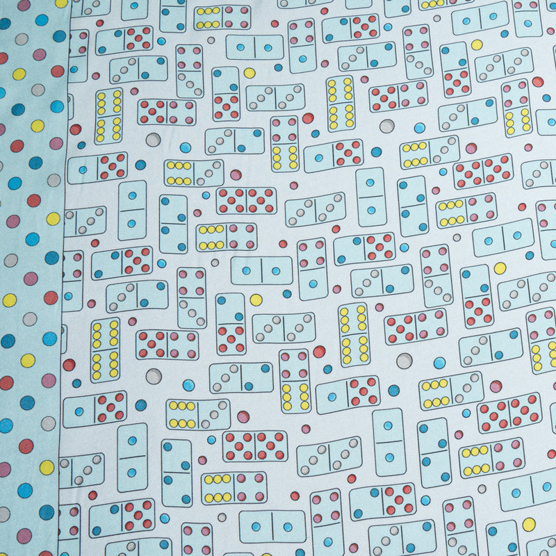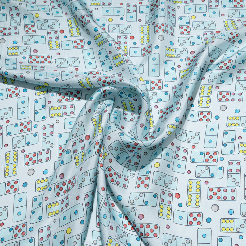 Baby Blue Domino Printed Pure Silk Twill