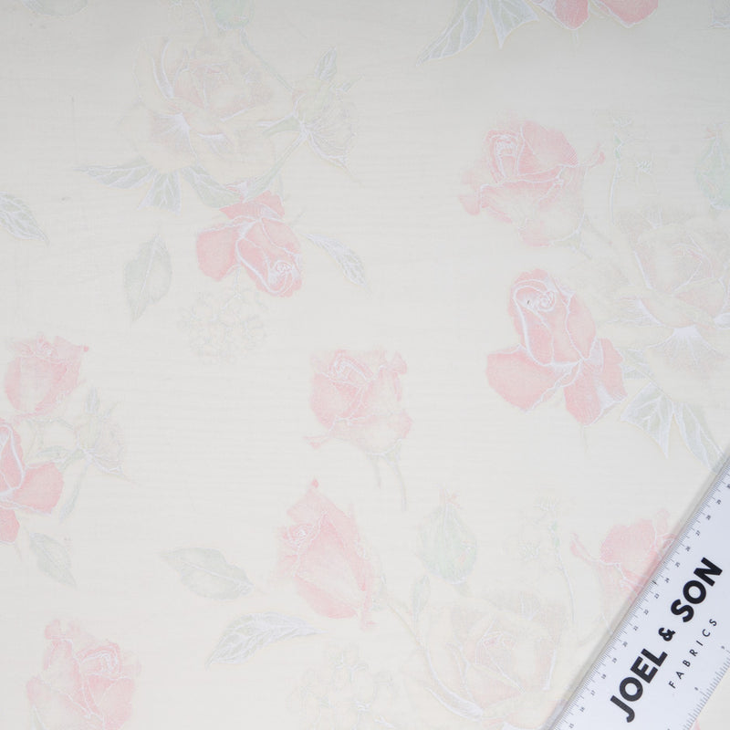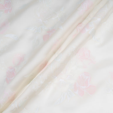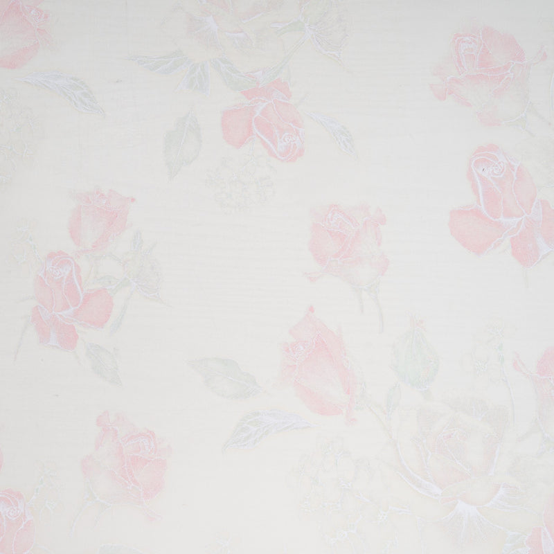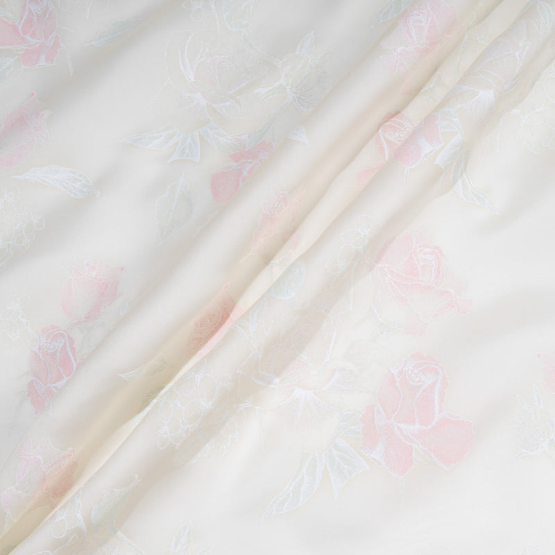Baby Pink Rose Vision Printed White Double Silk Organza