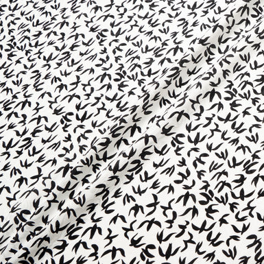 Black Abstract 'Bird' White Silk Jacquard
