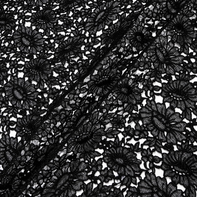 Black Busy Floral Guipure Lace