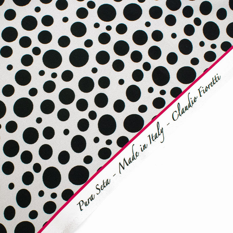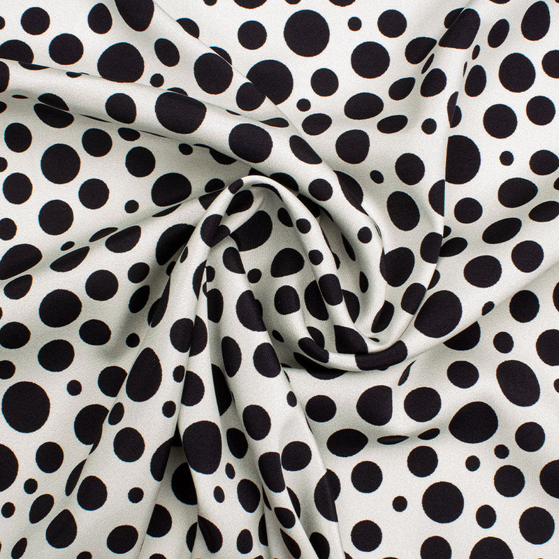 Black Irregular Spotted Grey Stretch Silk Crêpe