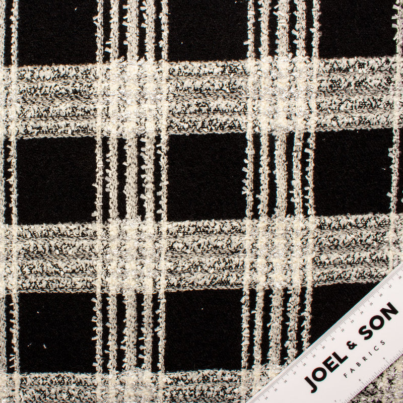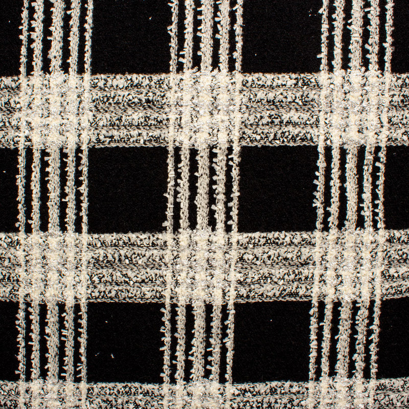 Black, Ivory & Silver Metallic Checkered Bouclé Fabric