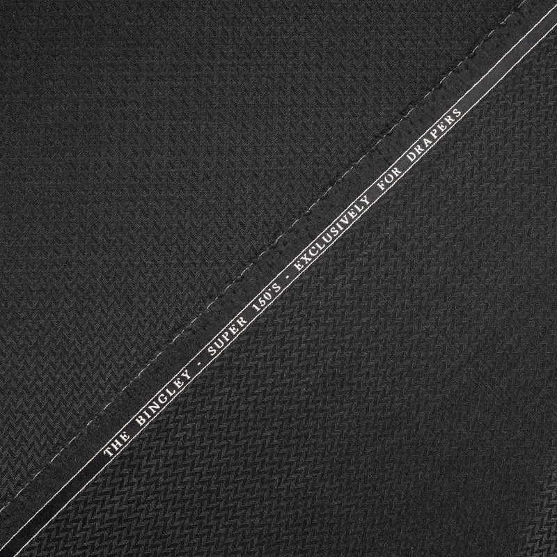 Black 'The Bingley' Super 150s Herringbone Wool Jacquard