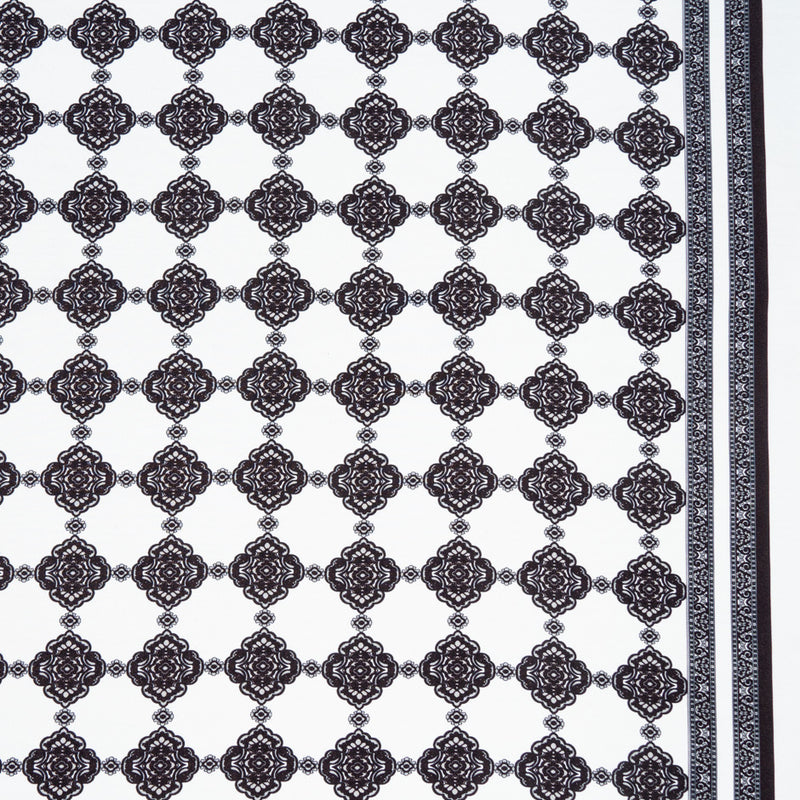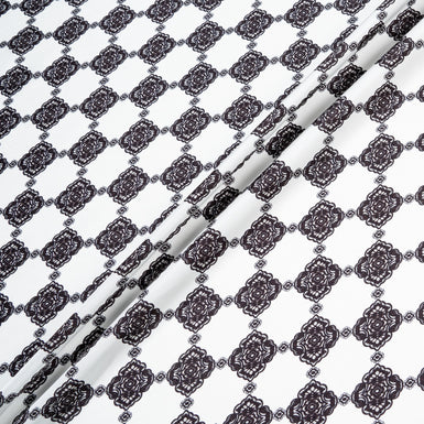 Black Geo Printed White Pure Silk Twill